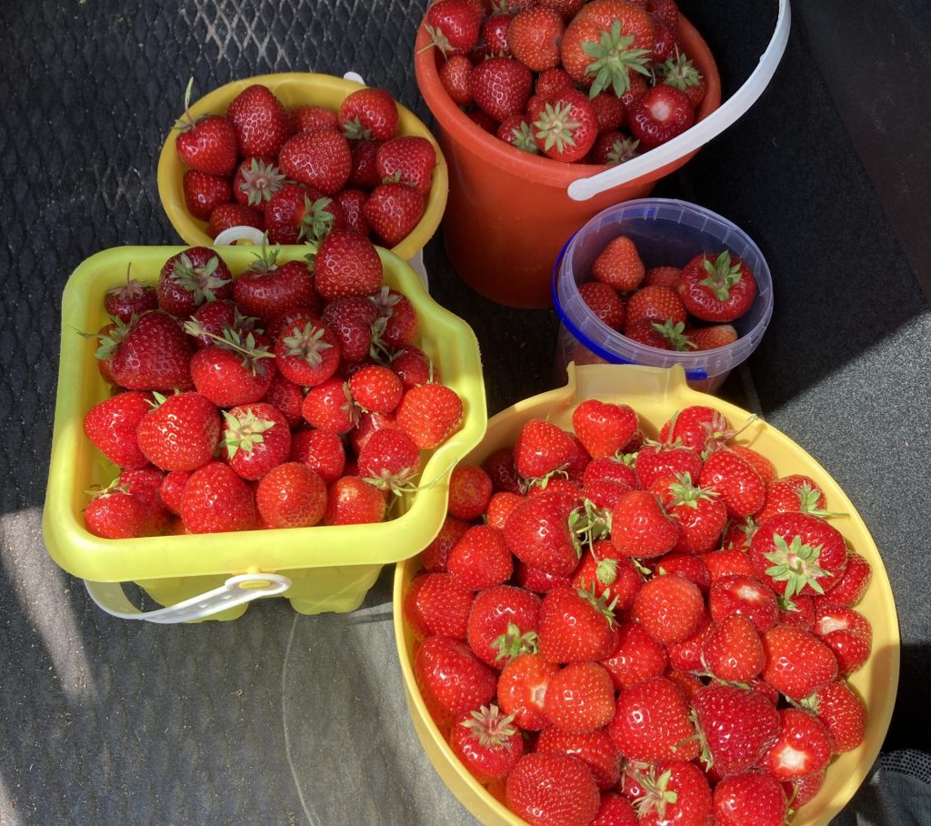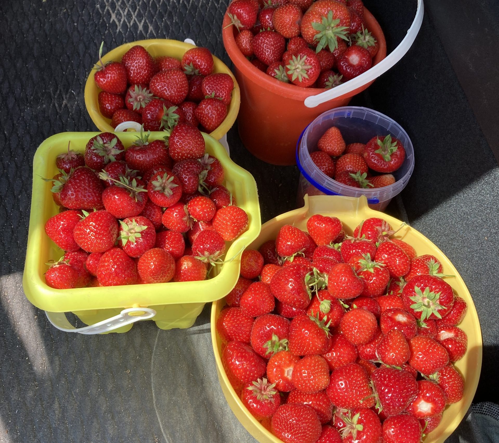 In der letzten Erdbeersaison waren wir mit den Kindern bei der Erdbeerernte. Neben den ca. 4 kg Erdbeeren die von den Zwergen direkt auf dem Feld verdrückt wurden, haben wir schätzungsweise 104 kg Erdbeeren mit nach Hause genommen. Naja, ok, es waren wohl ehr die 3 kg auf dem Bild und weitere 5 kg an folgenden Tag.