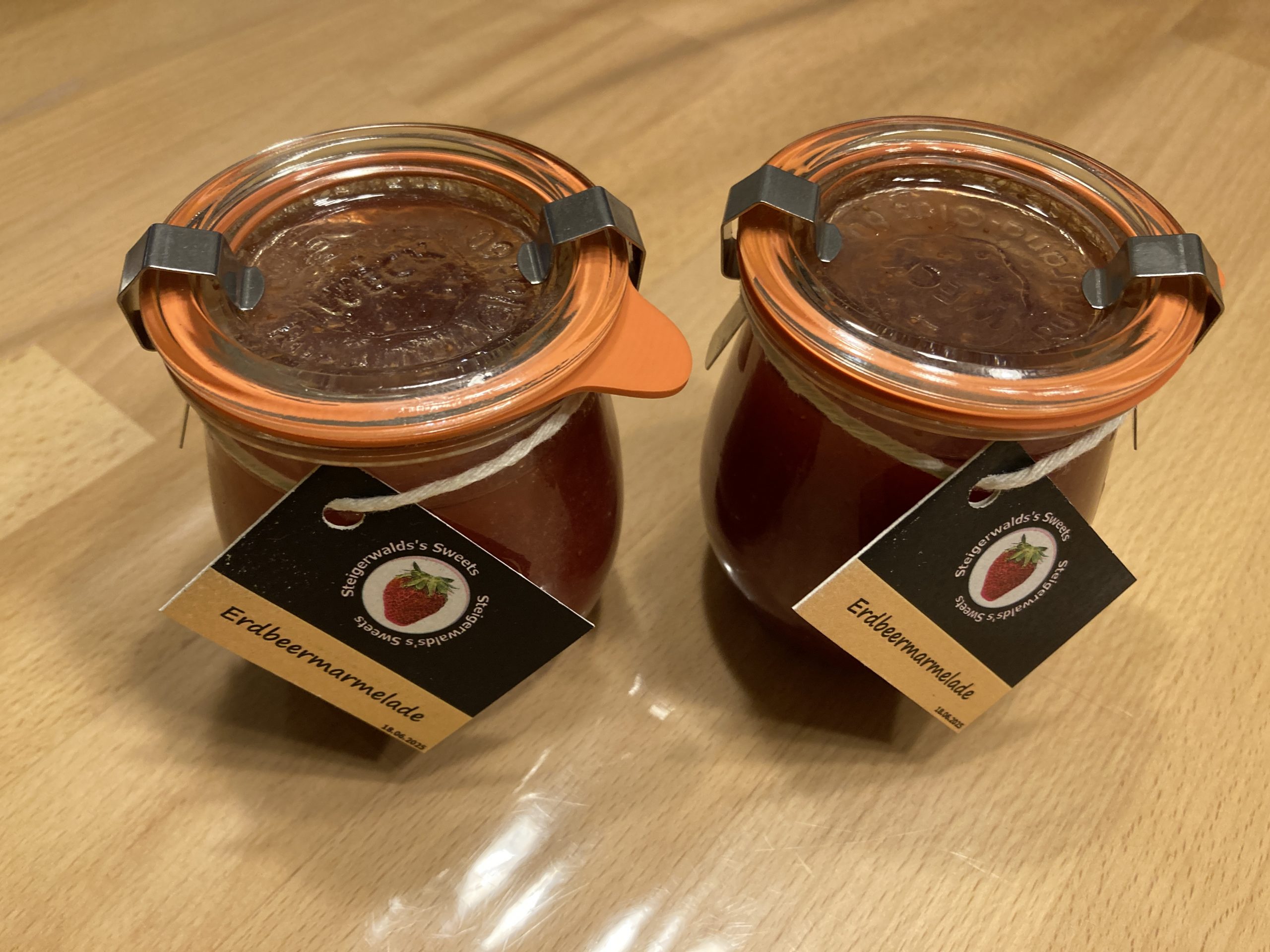 So haben wir also unzählige Gläser Erdbeermarmelade eingekocht. Viele davon in WECK Tulpengläschen, um daraus Giveaways für Freunde und Bekannte zu machen.