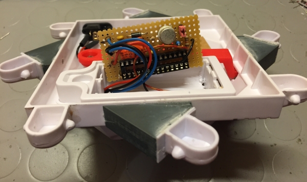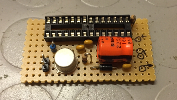 Als nächstes die Platine für die Mikrocontrollersteuerung und den Motortreiber aus vorhandenen Teilen zusammenlöten.