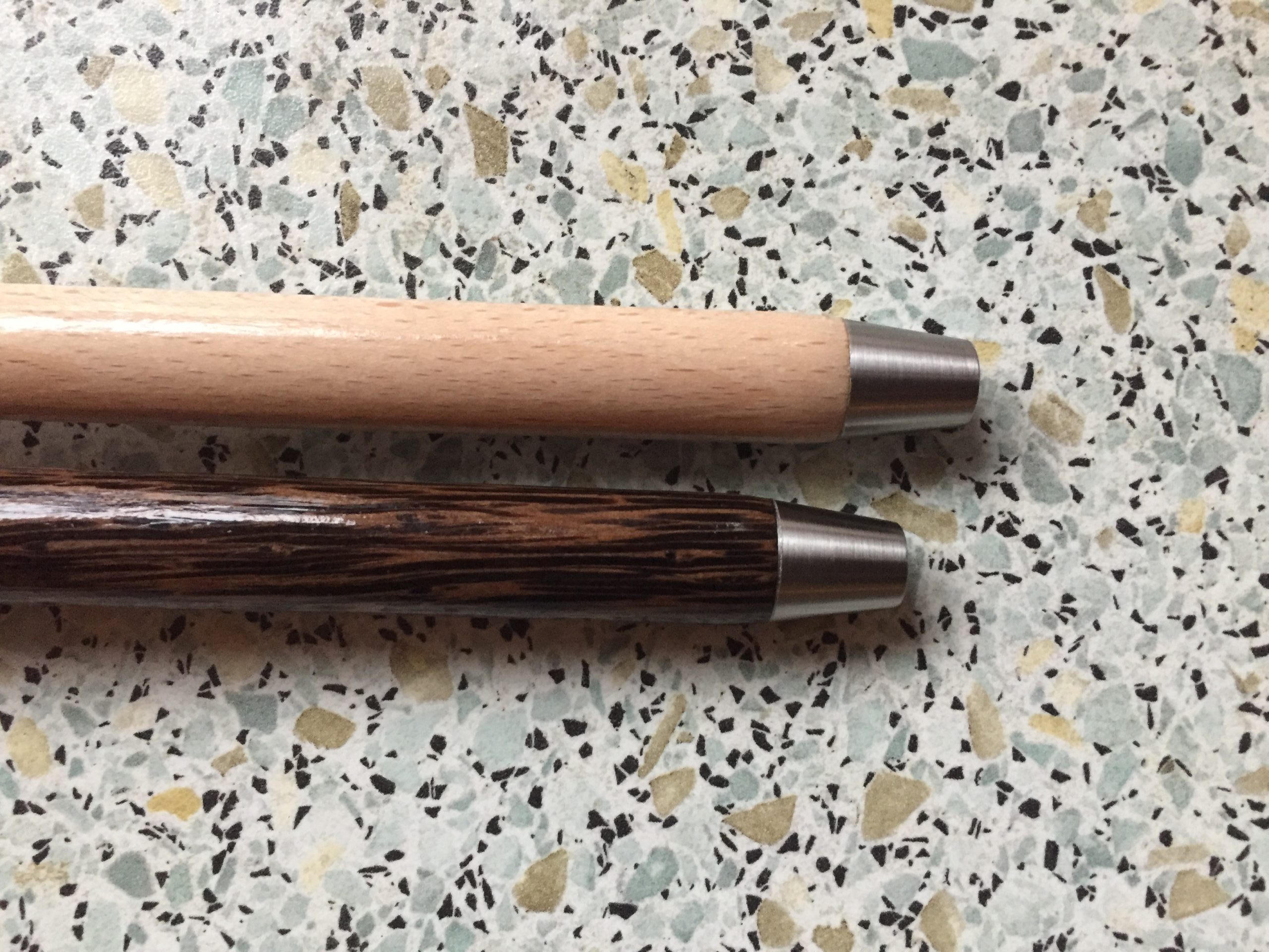 Begonnen habe ich mit einem schönen Stück durchgetrocknetem Buchenholz. Zuerst wird ein 10er Loch durch das komplette Holz gebohrt. Dann das Gewinde einer M10 Hutmutter herausgedreht und die Mutter auf das Rohr gepresst. Nun kann aus der Mutter der vordere Teil des Mundstücks gedreht, und folgend das Rohr mit 2K Kleber in das Holz geklebt werden. Anschließend kann die Form des Mundstücks nach belieben aus dem Holz gedrexelt werden. Nachdem das erste Mundstück aus Buchenholz soweit fertig war habe ich ein Stück Palmholz bestellt.