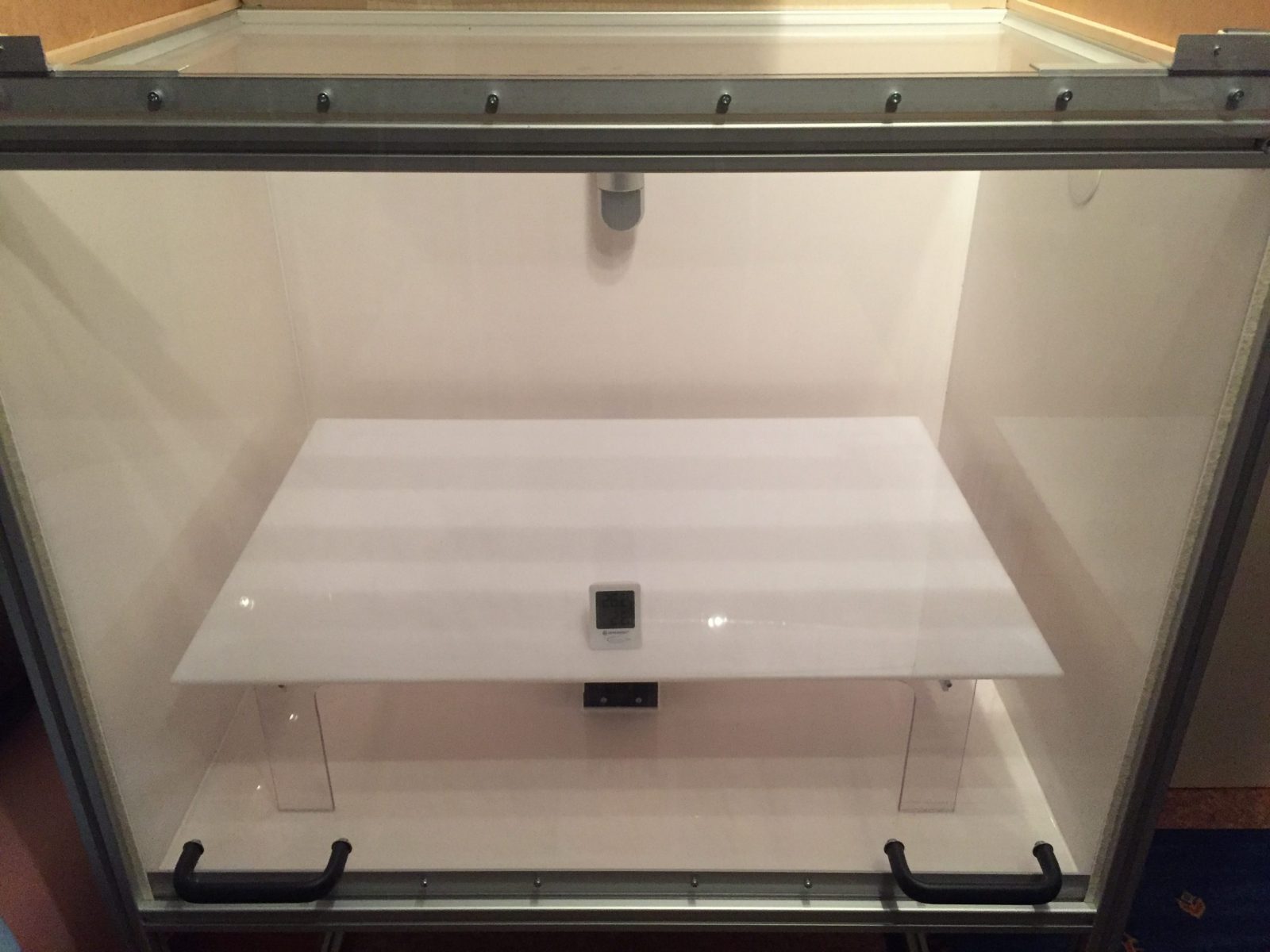 Zur Thermischen Isolierung sind die Hartschaumplatten angebaut. Im Deckel ist hier schon eine UV-Beständige Makrolonscheibe eingebaut. Der Innenraum wird mit weißen Makrolonplatten ausgekleidet, damit die Box einfach gereinigt werden kann, und die hohe Luftfeuchtigkeit nicht zu Problemen führt.