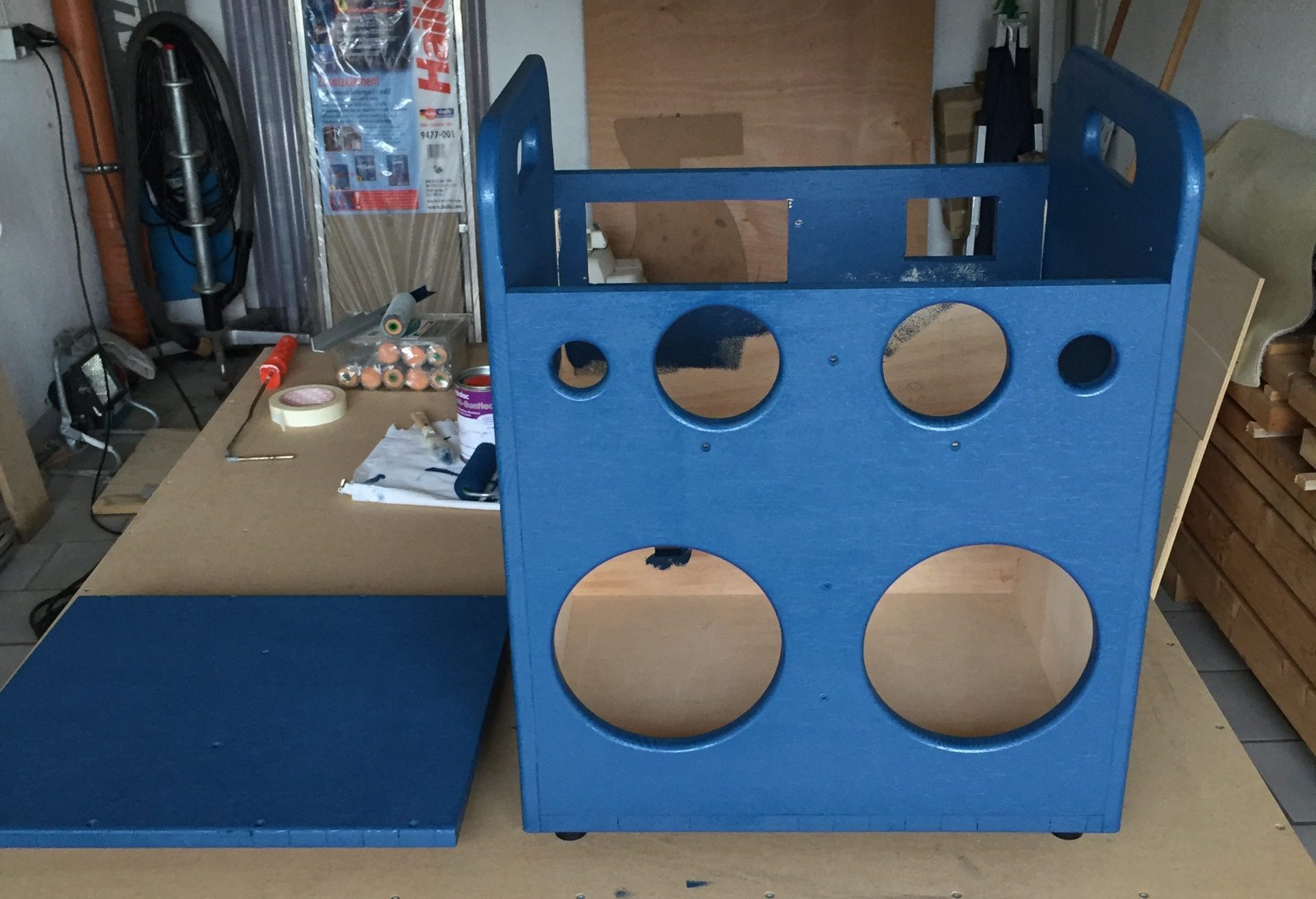 Dann die Platten des Woofer – Bereichs verleimen und verschrauben.
