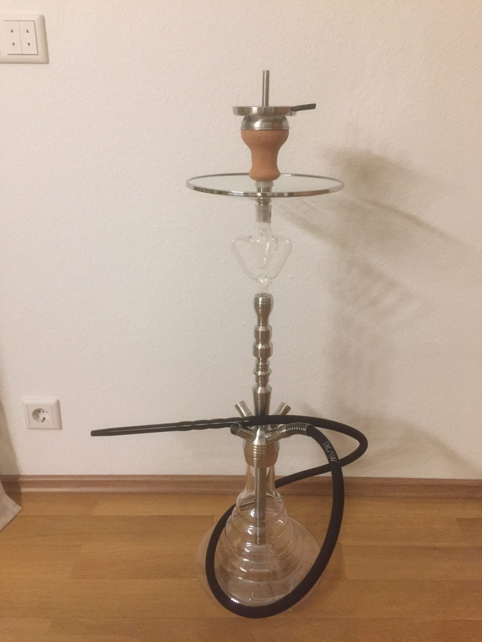 Wir haben uns für eine DILAW® ONYX Shisha aus Edelstahl mit alternativem Molassefänger, Glasteller und einer Größe von etwas mehr als einem Meter entschieden, und knappe 100€ bezahlt.