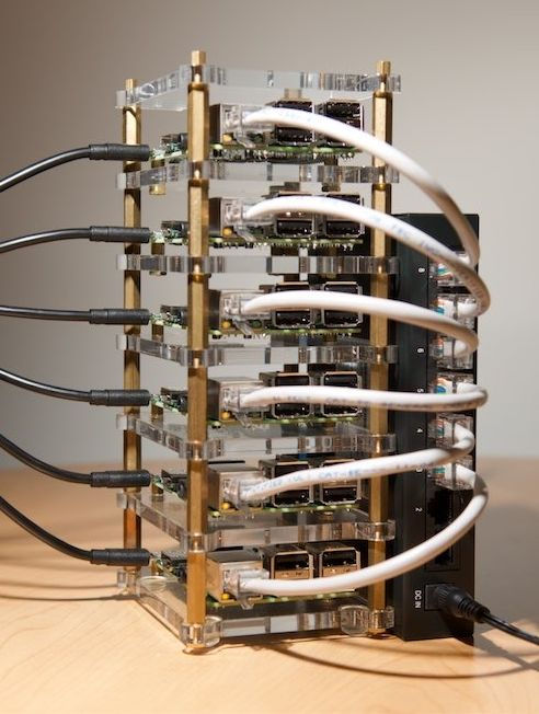 Daraus ein Cluster aus 6x Pi3 zusammengeschraubt.