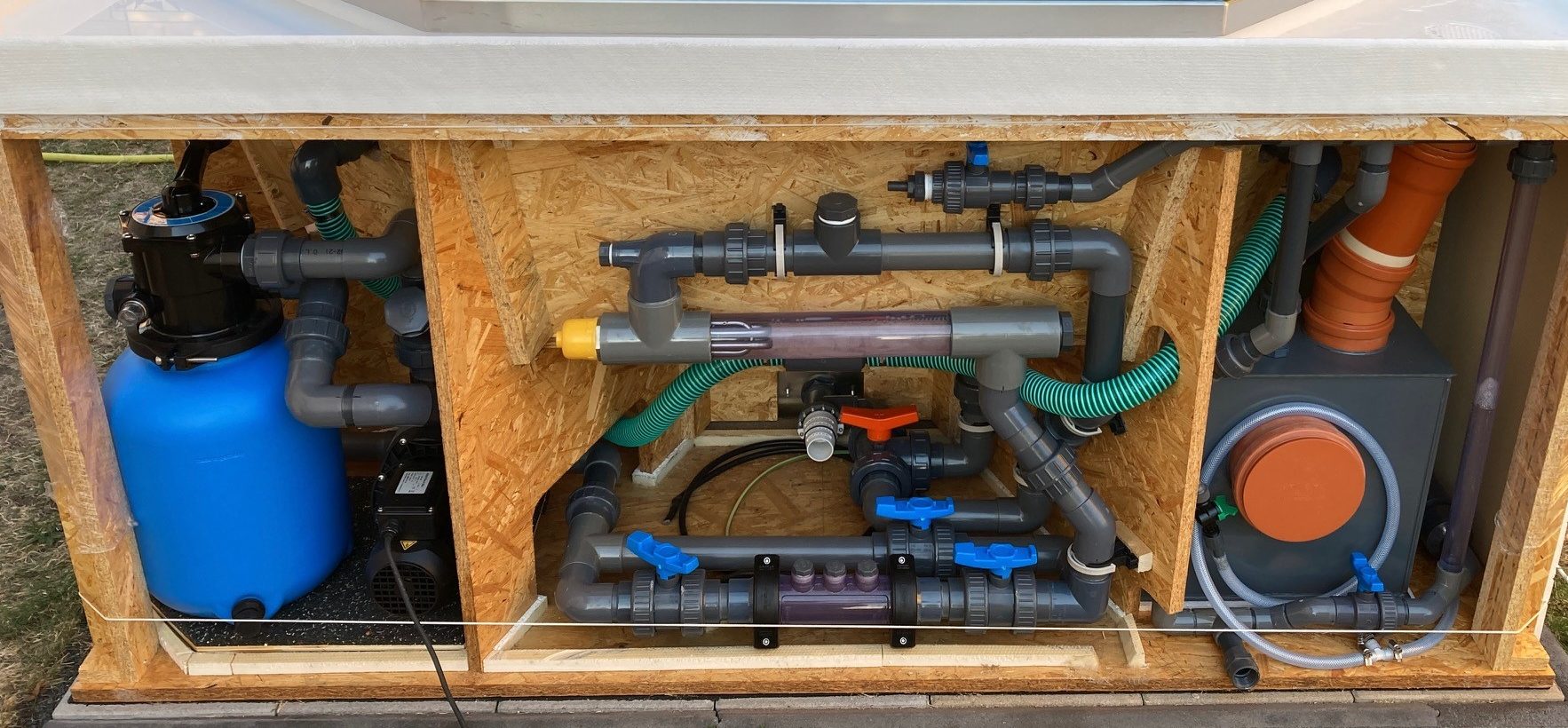 Da ich einige Zeit in meine Solaranlage und dessen Steuerung investiert habe, musste ich den Pool zunächst hinten anstellen. So hat es eine Weile gedauert bis die restlichen komplizierteren Teile fertig waren.