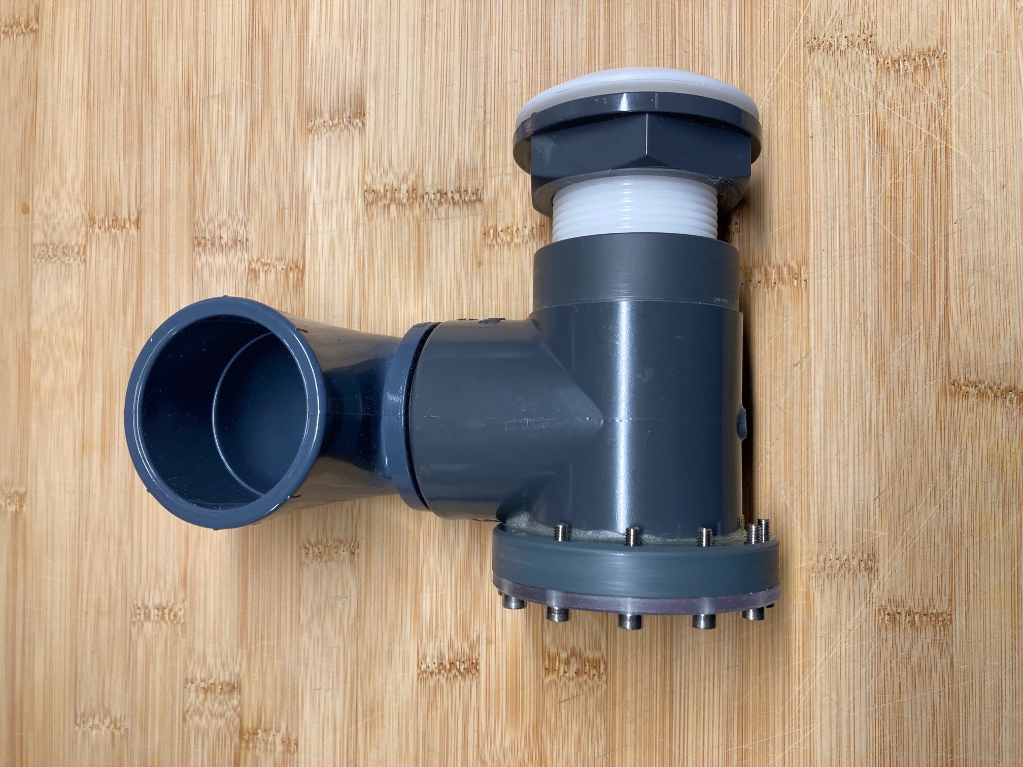 Die Massagedüsen sind als nächstes dran. Diese werden mit einer Silikondichtung in die Wanne geschraubt, und mit einem speziellen Winkeladapter versehen, um einen 38mm Schlauch anbringen zu können. Danach musste ich den speziellen Adapter für den Haupteinlauf herstellen. Über diesen soll der Pool auch beleuchtet werden.