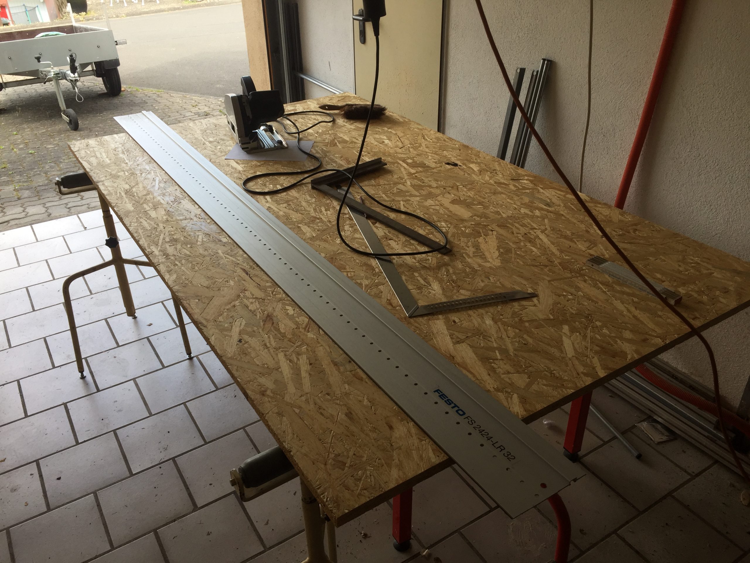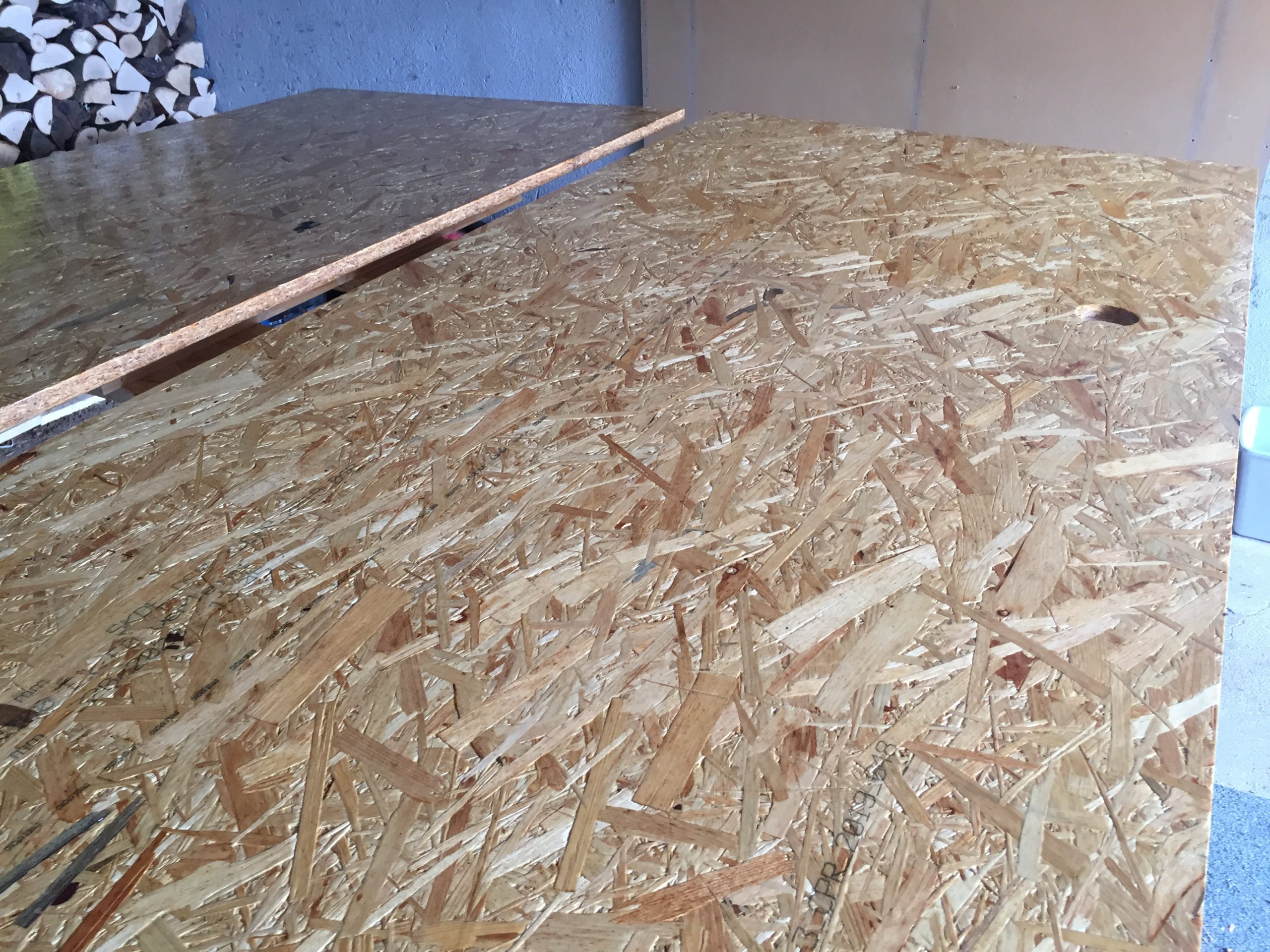 Die Grundkonstruktion ist an der Reihe. Zunächst 22er OSB NKL2 Platten in rauen Mengen beim lokalen Händler besorgt.