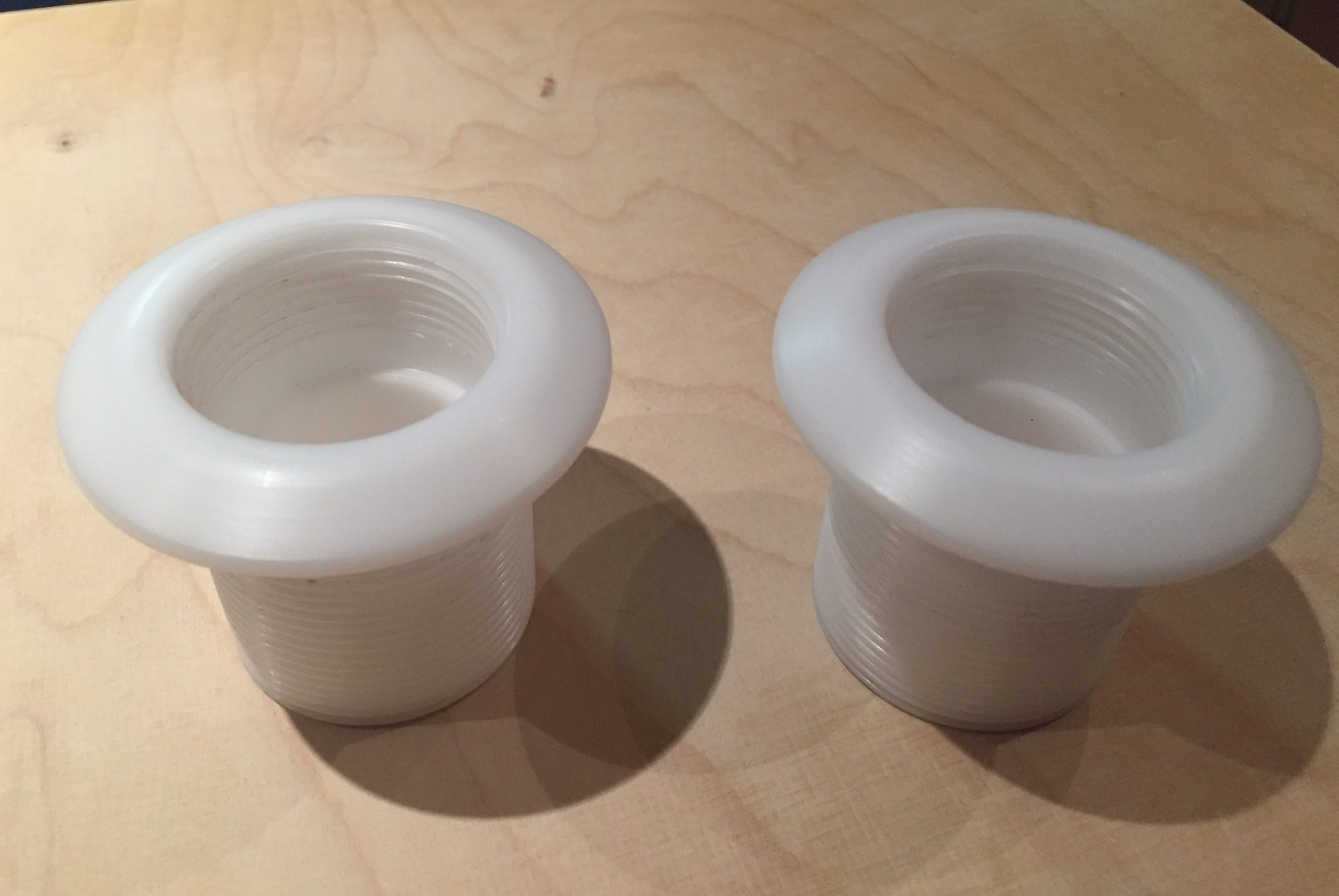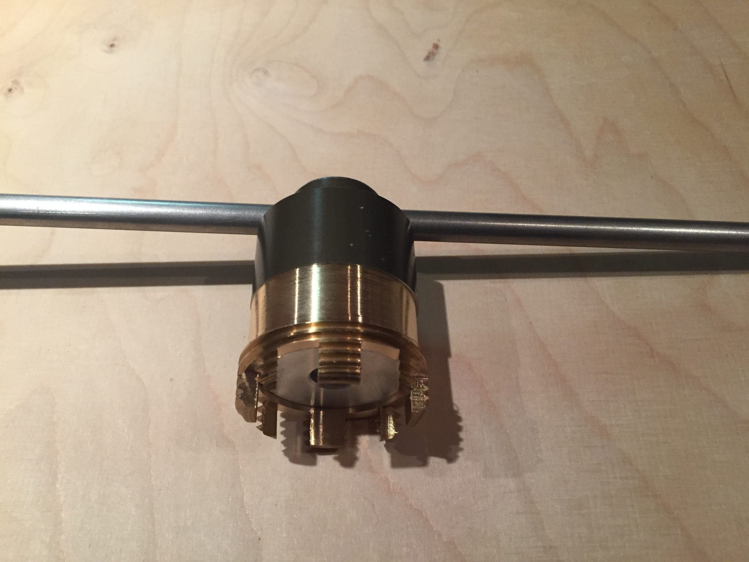 Um die Zeit einigermaßen Sinnvoll zu nutzen habe ich mit dem Einlauf und den Massagedüsen begonnen. Wegen seinen Materialeigenschaften habe ich mich für POM (Polyoxymethylene) entschieden. Da ich weit und breit niemanden gefunden habe, der mir ein 1 1/4 “ Gewindeschneideisen leihen konnte, musste ich mir zunächst eines anfertigen.