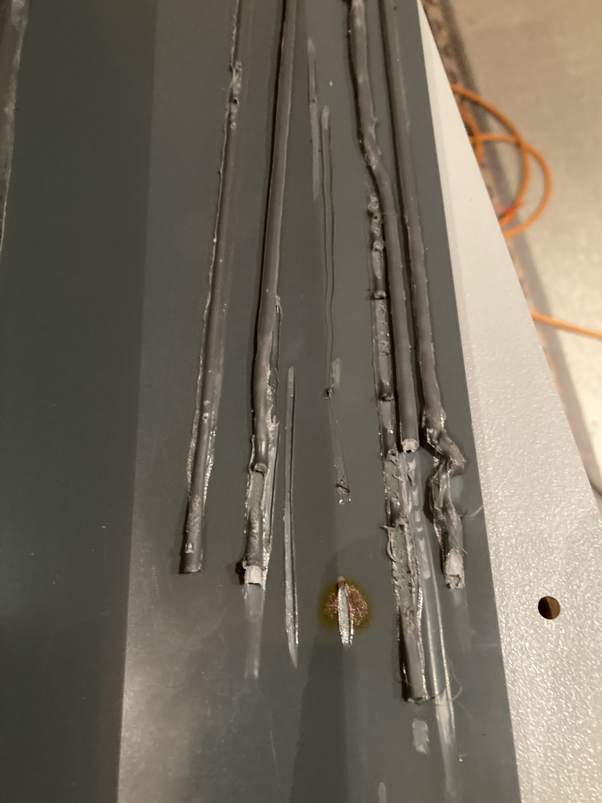 Die mit dem Heißluftföhn mitgelieferte schrottige Flachdüse, ging gleich in die Tonne. Passenderweise hatte ich noch eine Hart-PVC (PVC-U) Platte sowie 4mm Rundstäbe zum testen rumliegen. Detaillierte Anleitungen zum PVC-U schweißen im Internet zu finden, ist gar nicht mal so einfach. Im deutschen ist hier relativ wenig zu finden. Unter „plastic welding“ gibt es schon mehr. Wie so oft findet man hier viele Infos, und dabei auch viel Mist. Bei manchen Youtube Videos fragt man sich, wie diese Menschen überleben konnten.