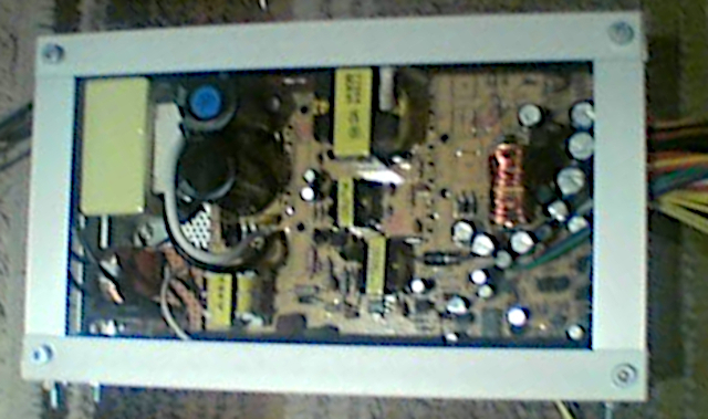 Begonnen habe ich damit, die benötigten Zusatzplatinen im Eagle zu erstellen, und bei PCB-Pool zu bestellen. Dann habe ich die von mir bestellte Computer-Hardware zusammengesteckt um zu prüfen, ob alles zusammen läuft, wie ich es mir vorstelle. Das hat bis auf die noch fehlende Hauppauge Sat Karte alles geklappt. Leider musste ich schon in den ersten Minuten feststellen, das das Netzteil nicht so leise war, wie ich es mir vorgestellt habe. Also habe ich es zerlegt, und geschaut was ich pimpen kann. Beim zerlegen hat sich mir ein gruseliges Bild gezeigt. Nicht richtig eingelötete Bauteile, kalte Lötstellen, Bauteile die mit Heißkleber festgeklebt wurden, Kabel die mit Heißkleber befestigt wurden, Kühlkörper die frei an der Leistungselektronik hingen. Die Lüfter haben geheult, die Spulen gepfiffen… ein graus. Das war für mich das erste und letzte Netzteil dieses Herstellers. Da war nicht viel zu retten. Ich habe dann den Entschluss gefasst das Netzteil von Grund auf neu aufzubauen. Alle Kabel raus, die pfeifenden Spulen ersetzt, und alle Bauteile neu und ordentlich verlötet. So konnte ich es auch kompakter gestalten und mit einer Passiv-Kühlung versehen.