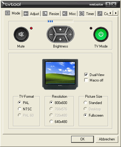Die Videoausgabe soll auf dem Fernseher landen. Dazu nutze ich das TVtool welches inzwischen in der Version 9.7 zum Download steht. Hier ein Screenshot.